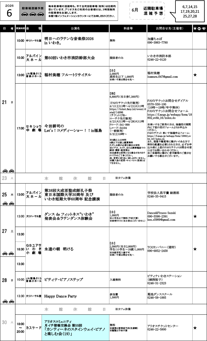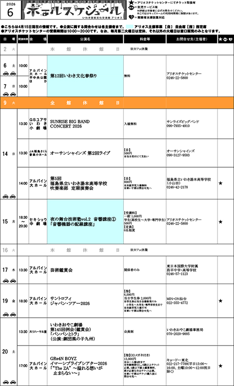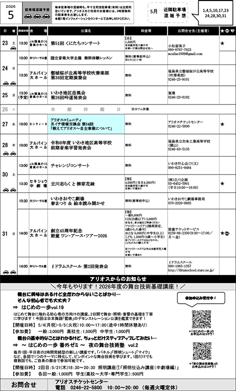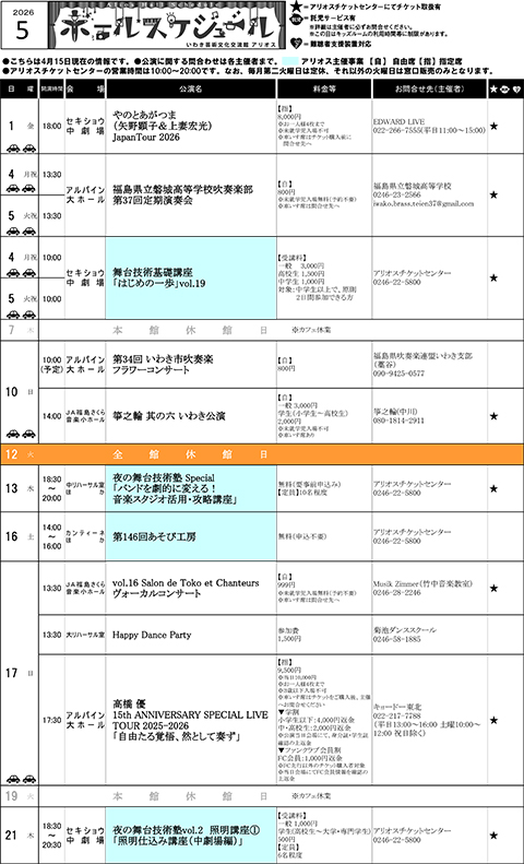PDF版ダウンロード https://iwaki-alios.jp/wp-content/uploads/2026/04/hallschedule260506.pdf