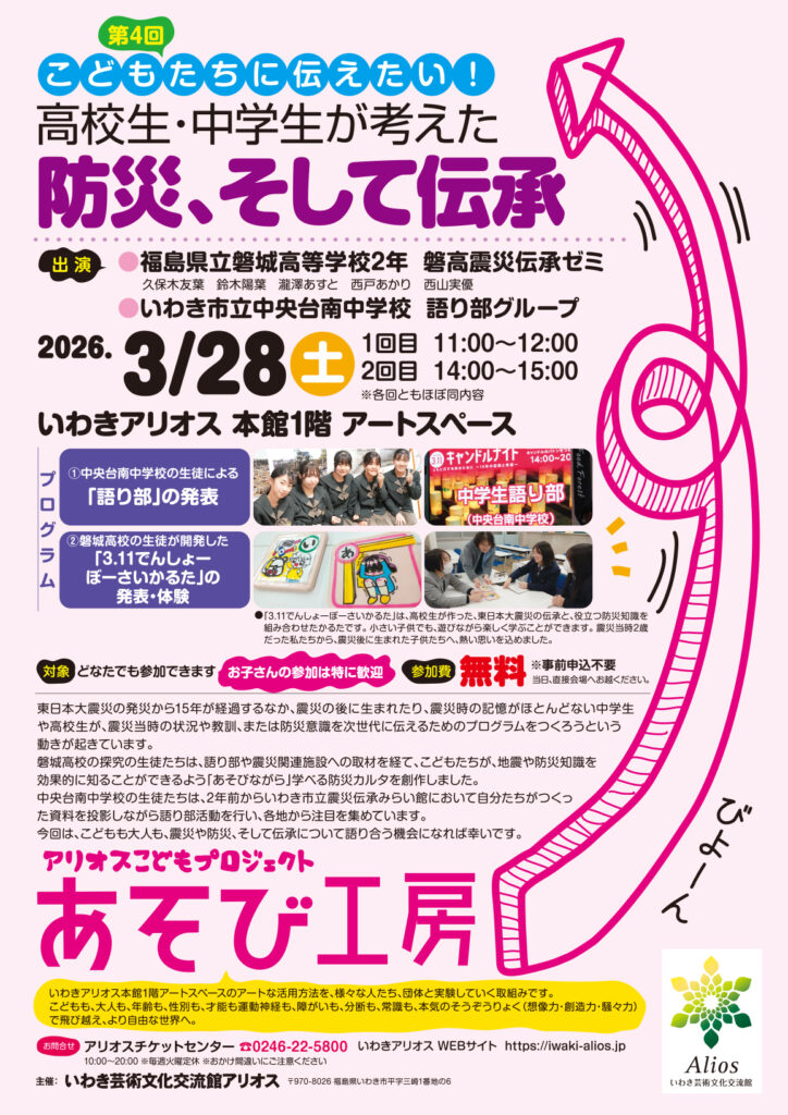 | 出演 | 福島県立磐城高等学校 2年 探究グループ いわき市立中央台南中学校 語り部グループ |