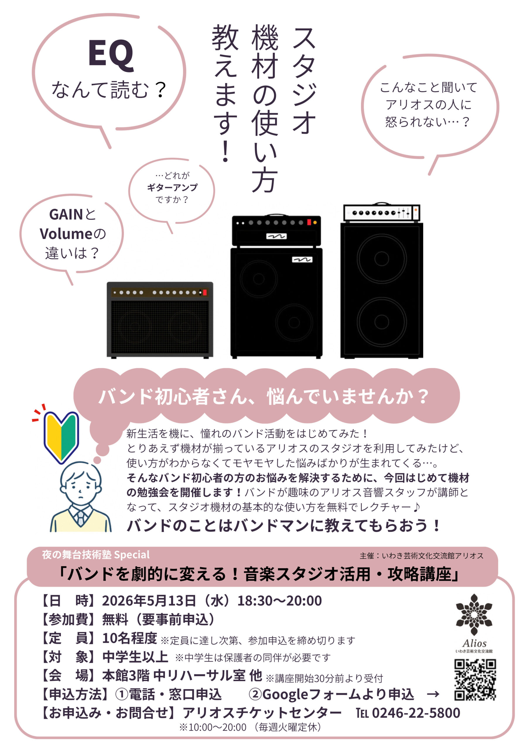 の勉強会を開催します!バンドが趣味のアリオス⾳響スタッフが講師と
